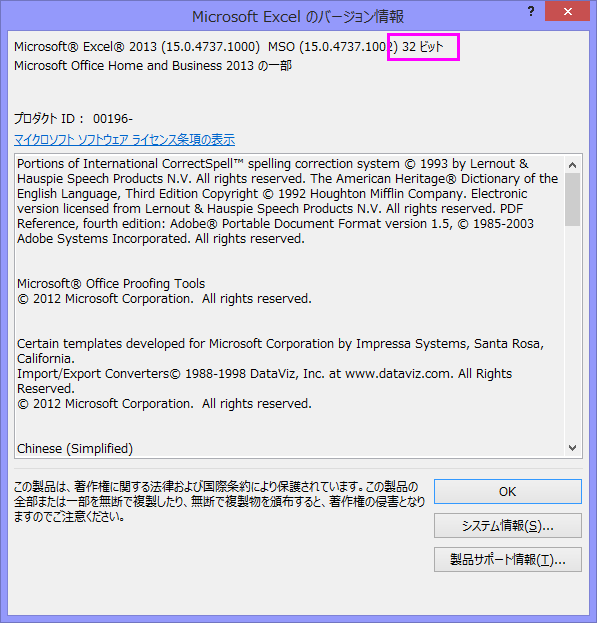 関連情報 Microsoftサポート「Office 2013 の 64 ビット版」